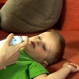 Сними защитный колпачок!Положи голову ребенка на одну сторонуАккуратно помести наконечник в ноздрю. Сильно, но не продолжительно нажми на наконечник. В таком положении ребенок должен пробыть несколько секунд, чтобы морская соль подействовала. Подобную процедуру повтори и со второй ноздрей.