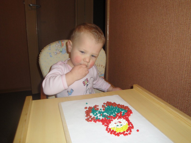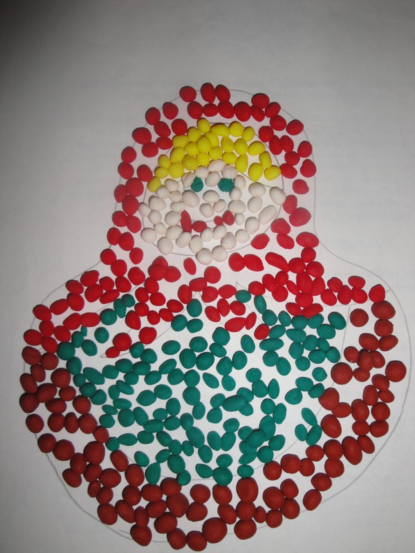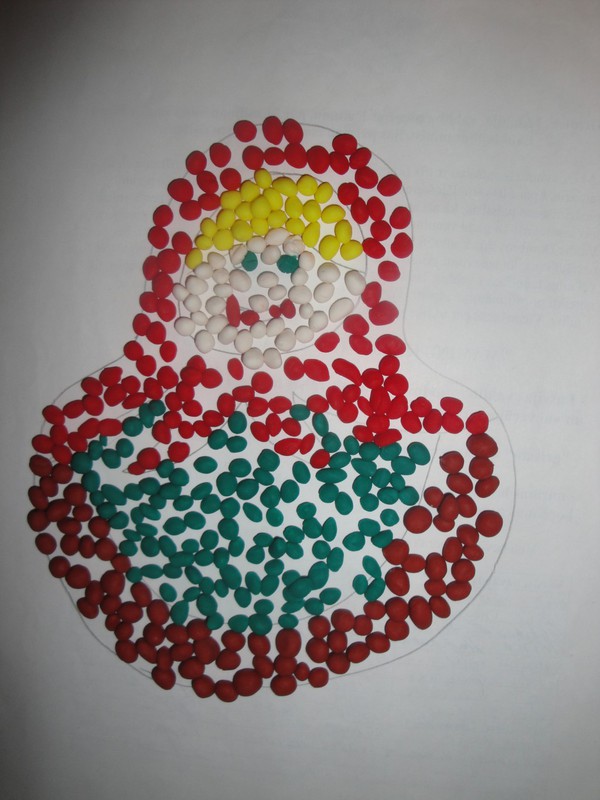 А мы решили сделать из пластилина мазайку.Рисоватьб я не умею и поэтому пошли от простого, наколякала матрешку :)Ульянка принялась за пластилинКрутила шарикиПотом стали собирать шаг за шагомИ вот такая матрена у нас вышла! Ульянка была в восторгеОсобенно когда я разрешила ей это рушить :)И понеслась...А потом был фейерверг из пластилинаИ красочные полы :DСпасибо за внимание!!!
