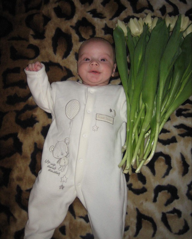 Klassnij malish!Tochno kavaler! da eche i s raznimi buketami!