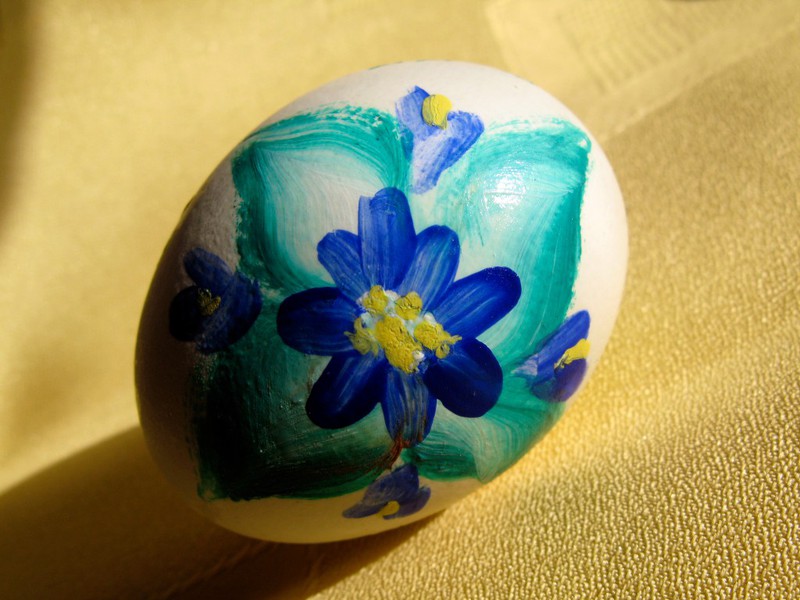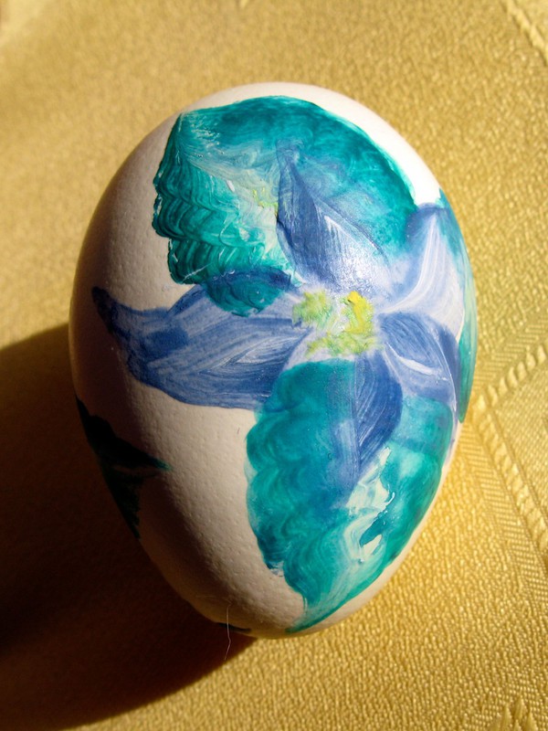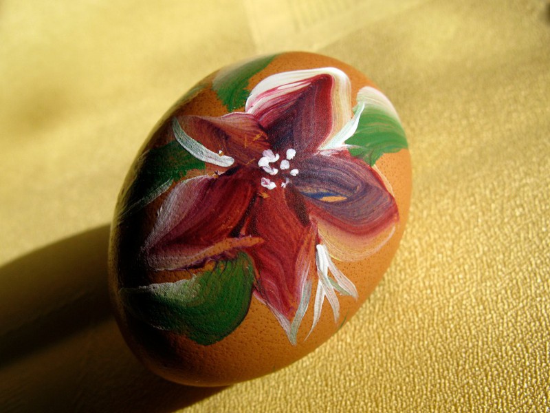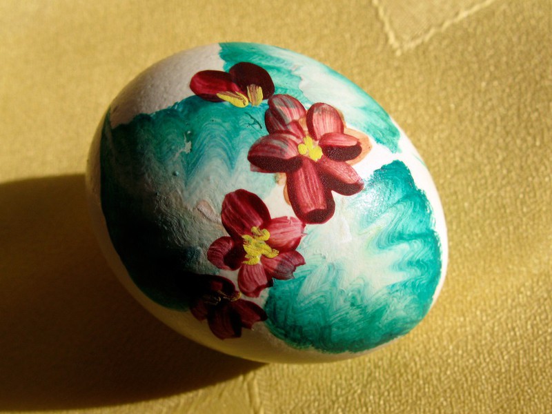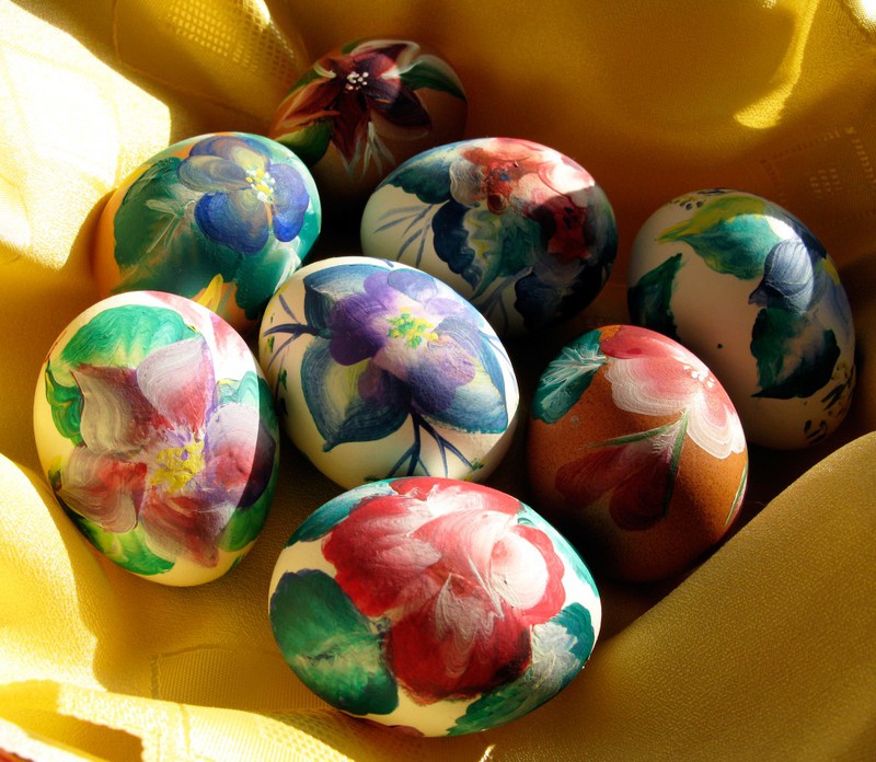Яйца расписаны с применением техники двойной мазок (one stroke).