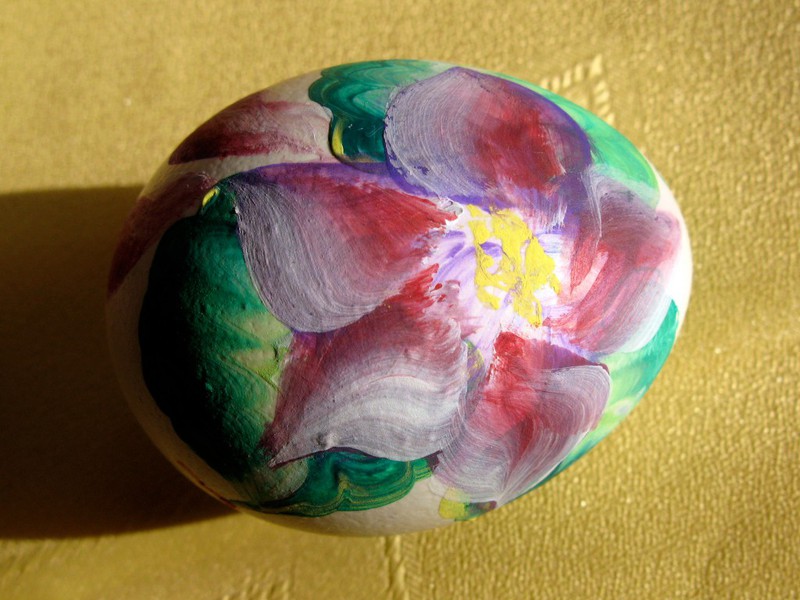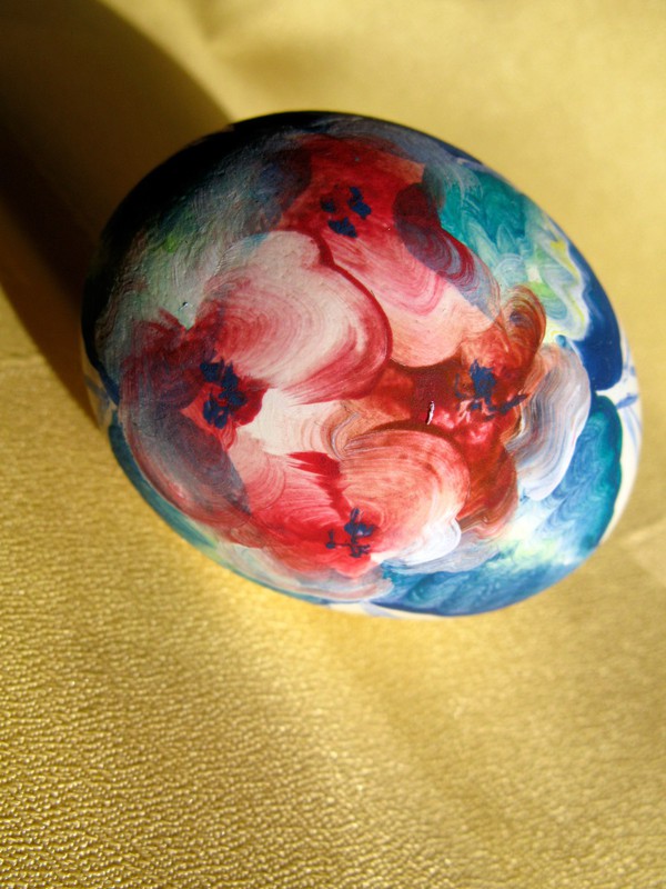 Этой техникой можно расписывать не только яйца, но и почти все другие поверхности - дерево, пластмассу, ткани. Например, можно расписать зонтик, мебель, сумки.Суть этой техники в том, что на плоскую кисточку одновременно наносятся 2 краски. Используются 2 цвета, а образуется плавный переход между ними из множества оттенков.Совсем не обязательно быть профессиональным художником, чтобы получилась красивая роспись.Честно говоря, жалко разбивать такую красоту :)В последнее время в Риге октрылось несколько студий, где можно научиться этой технике. Бабушка изучала её в студии Hobbyset.