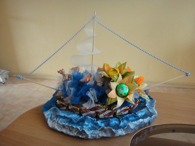 Сроки изготовления заказа 1-2 дня.Цены зависят от выбранных конфет или вина.Этот корабль с конфетами серенада -10 лат.Корабль - 7 лат.Корабль - 8 лат.Сумочки от 5-10 лат.Сроки изготовления заказа 1-2 дня.Денежное дерево- 5-6 лат.Букеты 4-6 лат.Шар с конфетами рафаэлло - 5 лат.Орхидея - 4 лата.Корзиночки 5-7 лат.