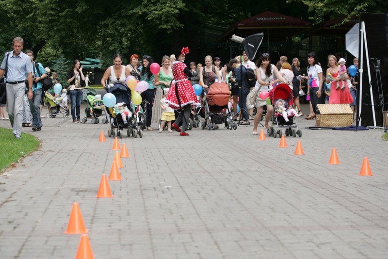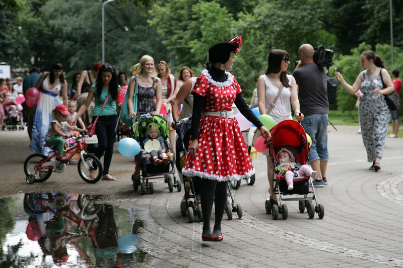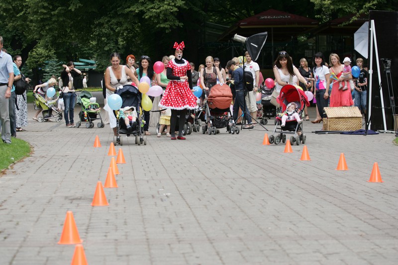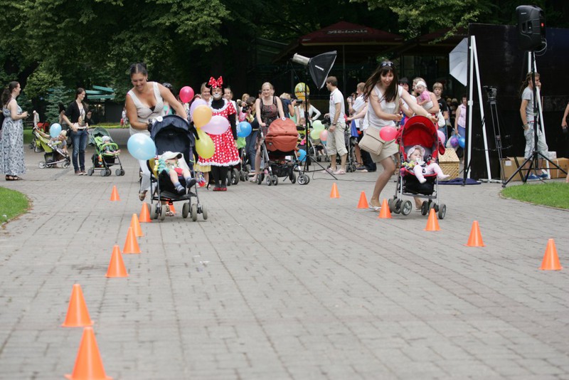 Всех встречали два сказочных персонажа - Hello Ketty и Микки Маус Каждому желающему вручался шарик голубого цвета и вот такой значок У всех он останется на память о мероприятии 11 июляЖурналистов было сравнительно много А наши мамы охотно раздавали интервьюВполне возможно, кого-то вы видели в том или ином новостном выпуске А снимать и рассказывать остальным было о чем! Мамочки ведь пришли не с пустыми руками А с колясками) Да самыми разными И, конечно, с малышами Куда же без них, таких любимых Ну, что? Готовы?Можно начинать!Сначала все участники парада колясок выстроились в ряд И отправились на парад А пока мамочки прогуливались по парку Жюри оценивало все транспортные средства Их было достаточно много Каждый нашел свою изюминку в украшении Смотреть было очень интересно А еще создавалось по-настоящему праздничное настроение Кстати, очень здорово, что мероприятие проходило возле детской площадки Верманского парка Пока малыши гуляли, более взрослые детки могли вдоволь налазаться и накататься на площадке Вот какая большая процессия движется обратно Безусловно, парад сопровождали сказочные персонажи, ведь вместе с ними он красочнее и веселее Постепенно все возвращаются обратно Чтобы поделиться своими впечатлениямиИ узнать, кто же победил Первое место заняла мамочка Вероника Крылова Второе - Ольга АнукевичА вот кто же третье? Девочки, если знаете, поделитесь! Да! Были не только мамы и дети, но и папы, конечно же Ведущая мероприятия Кристине Гарклава интересуется у участников парада, как все прошло И зовет принять участие в новом соревновании Называется оно "Гонки на колясках" На старт! Внимание! Марш!Это было настолько увлекательное зрелище, что мы решили оставить все фотографии Чтобы вы могли пошагово прочувствовать, как это было Многие мамочки после сказали, что это было очень здорово Сама идея проведения таких гонок понравилась Мол, гоняли бы еще и гоняли)Да время быстро истекло Может нам устроить как-нибудь гонки просто так?)))В любом случае море позитива получили не только участники Но и дети, которые в этих колясках сидели И зрители, которые за всем этим действом наблюдали Было весело! Да, да, гонки продолжаются Мамочки вошли в азарт И стремительно идут к победе Точнее, бегут к ней)Посмотрите, с каким интересом наблюдают за всем происходящим фотографы!Да в какой позе)) Главное, не упустить лучший момент Мы уверены - никто ничего не упустил Все зафиксировано на фотокамеру После гонок детки могли полазать по трубе из ткани, покидать мягкие мячики в кольцо и половить рыбу. Все аттракционы очень понравились И, конечно же, общее фото на память - вот она
