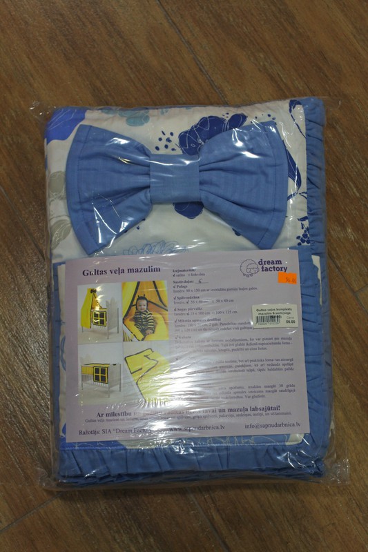 Шерстяное одеяло - 39,89 LsОдеяло - 12,80 LsОдеяло с изображением зайчика - 12,25 LsЖелтое и зеленое одеяло - 10,65 LsГолубое одеяло - 13,54 LsОдеяло с бегемотиком - 12,96 LsСинее одеяло с солнышком - 10,65 LsБелое полосатое одеяло - 27,95 LsТеплые одеяла. В зависимости от количества шерсти в составе меняется цена: 7,85 (в составе 50% шерсти) - 19,68 Ls