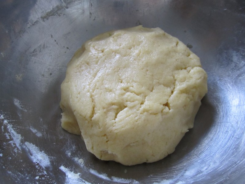 Нарезаем их на плоские дольки.Достаем тесто и пальяцами распределяем его по форме.Желательно оставить немного теста для украшения.