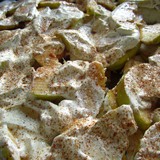 У меня осталось совсем мало.Посыпаем корицей.Высыпаем и разравниваем по поверхности яблоки.Обмазываем яблоки сметаной.