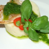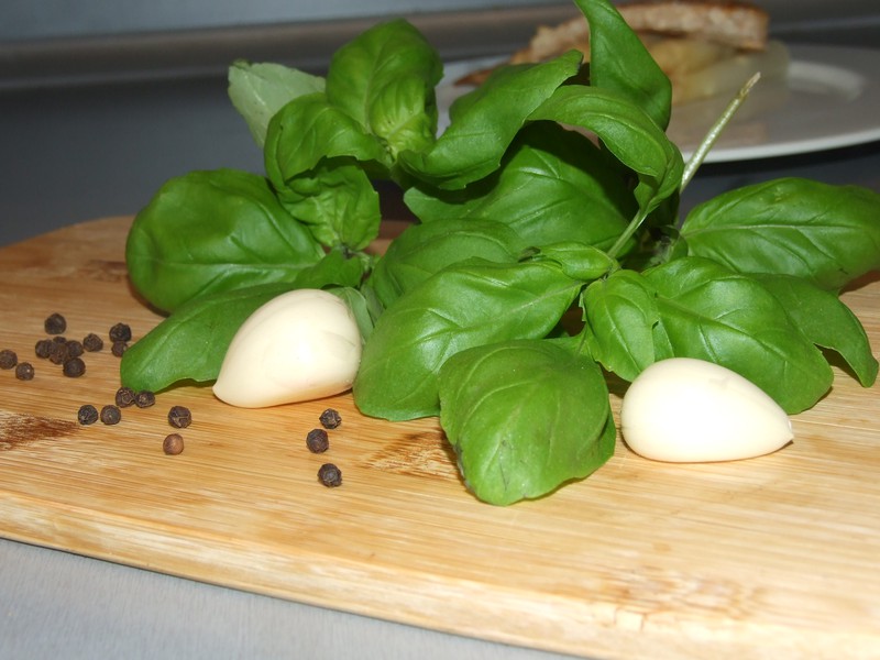 Я беру веточек 5-6 ( больших) базилика, щепотку соли и перца, а масло лью так что бы блендер мог взбить. Если в итоге масла много, то дайте соусу постаять 1-2 минутки и масло отделиться и вы его просто сольете.