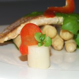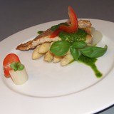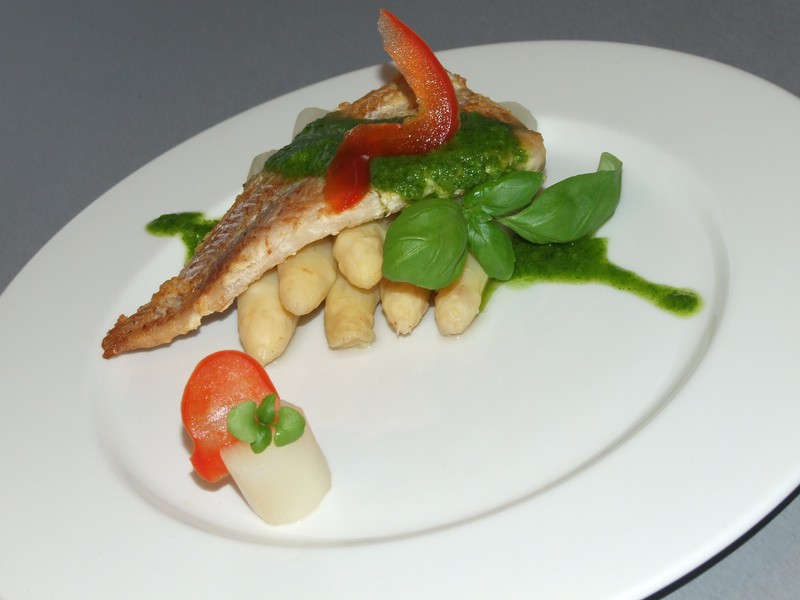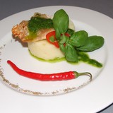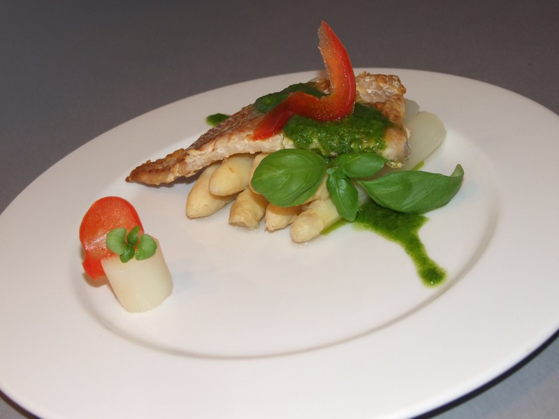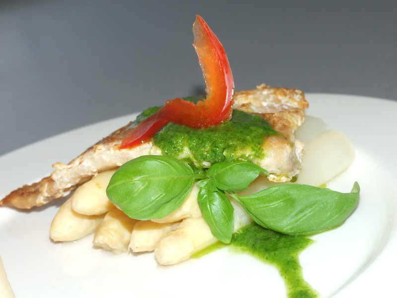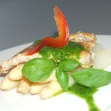 Опускаем её в кипящую подсоленную воду и варим 6 минут.Готова. Выкладываем на тарелку.Из базилика, оливкового масла, соли и перца делаем соус просто взбивая всё блендером.Ну вот и всё . Оформляем блюдо.Аромат базилика с чесноком.......это что то необыкновенное.Я спаржу не люблю, но моя мама была просто в восторге.Для тех, кто как и я не является ценителем спаржи, второй вариант.