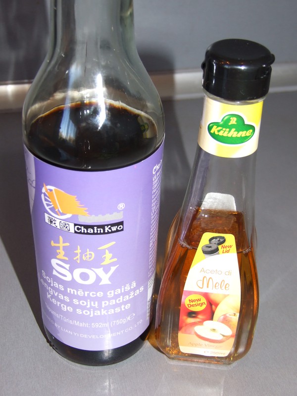 Делаем маринад из соевого соуса и яблочного уксуса.