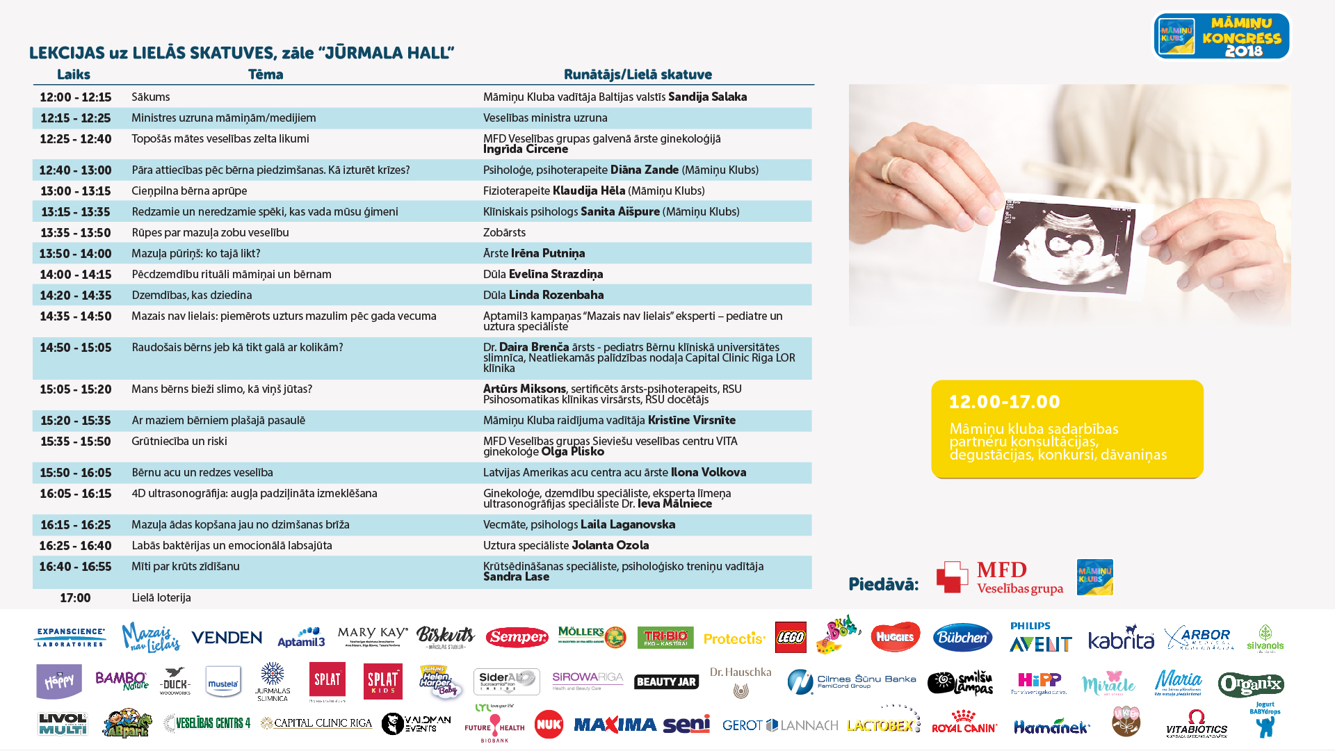 Будущие мамочки смогут пройти бесплатные обследования от специалистов “MFD Veselības grupas”, а детей ждёт широкая развлекательная программа с творческими мастерскими и невероятное шоу пузырей!