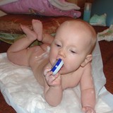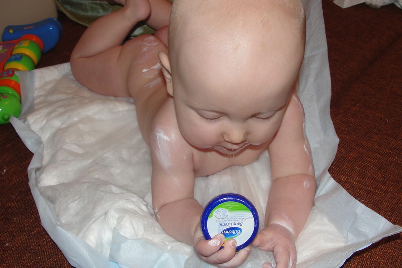 Както раз, меняю подгузник, мама забыла закрыть крем... :)))))Я немного побаловалась, изучила его, попробовала на вкус...Какая интересная баночка! Это же Bubchen ! И ещё раз опробуем уже закрытую баночку... чем хуже моих игрушек ?Я люблю Bubchen!!! :)))