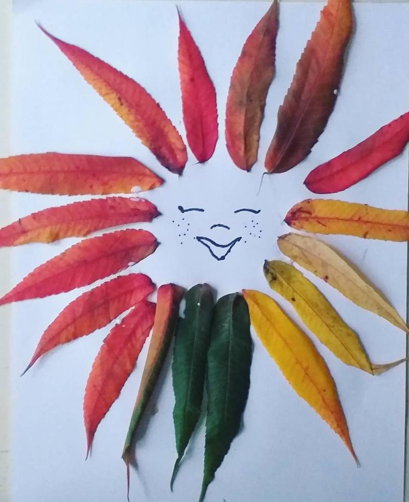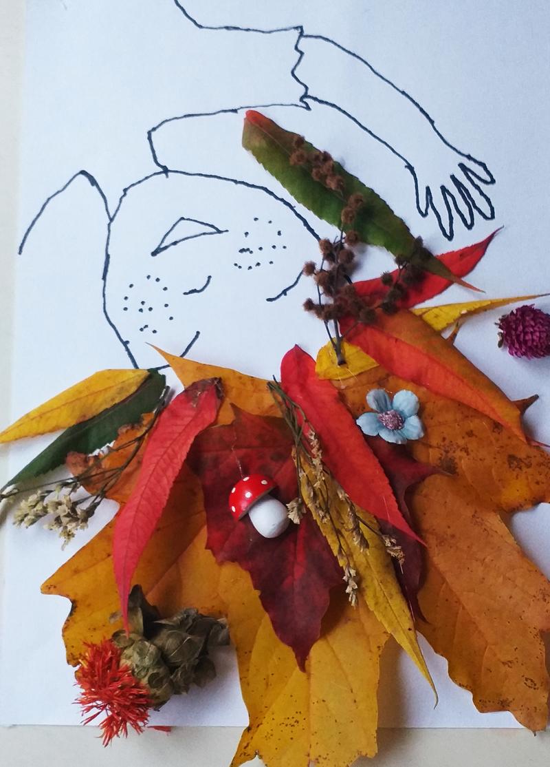 Можно заранее нарисовать глазки, ротик "осени" и дать ребёнку дополнить картину листьями.