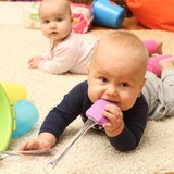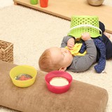Ребёнок растёт, растут и его способности. Если раньше для ребёнка бло вызовом засунуть пальчики в рот, то в 5-8 месяцев ребёнок уже играет с игрушками.