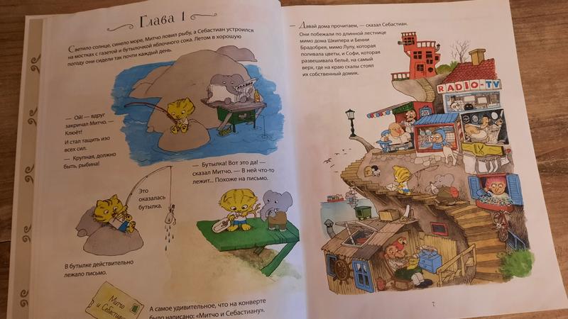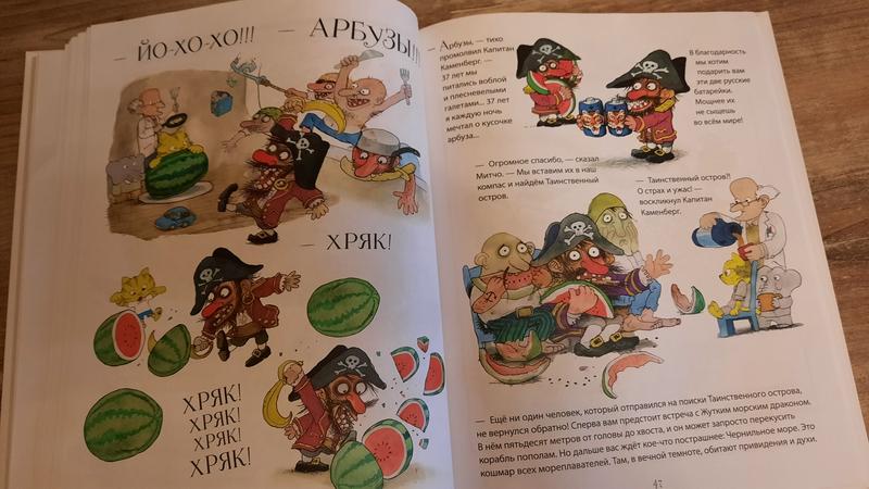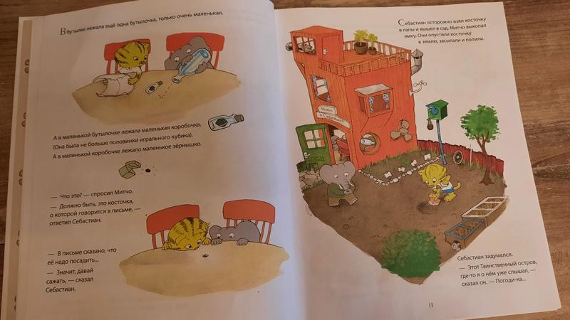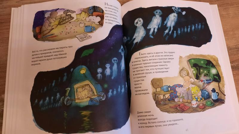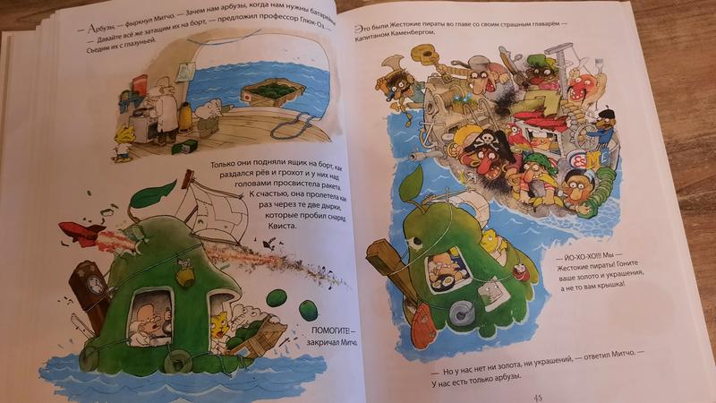 Кстати, для деток 5+ эта книга может стать находкой для самостоятельного чтения. Эта история увлекает сюжетом, это ведь приключения и интересно, что же там будет дальше – это раз. Здесь огромное количество живых и ярких иллюстраций с множеством деталей – это два. А текст расположен небольшими фрагментами и не пугает объёмом – это три.