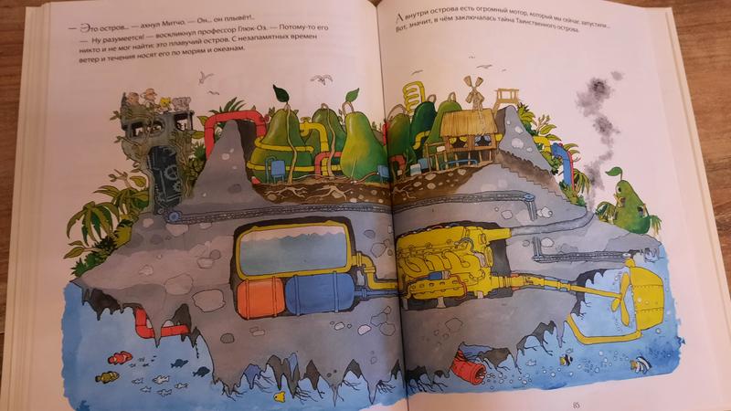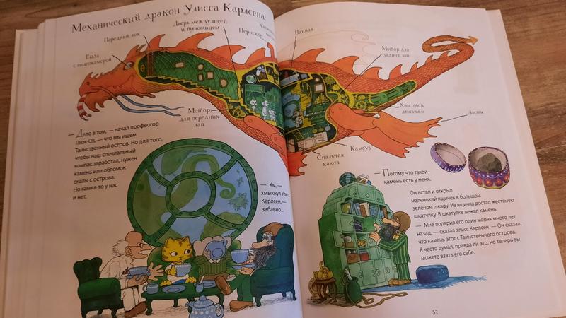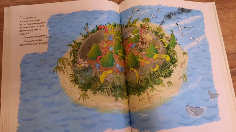 Есть даже иллюстрации в разрезе! Дом главных героев, гигантская груша, жуткий морской дракон и Таинственный остров - очень интересно рассматривать и изучать!