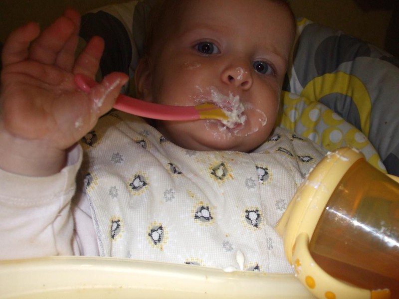 Как только начали вводить прикорм, начали приучать к порядку. Стараемся за столом не баловаться и соблюдать чистоту :)