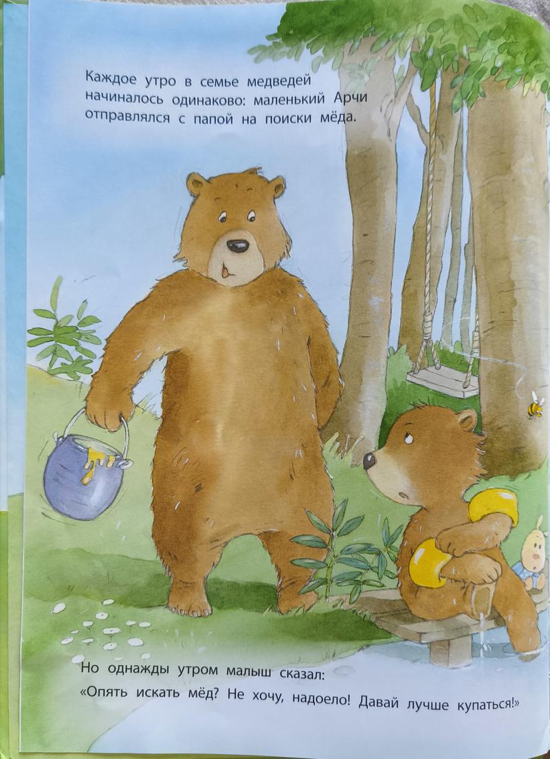 Это трогательная история о медвежонке Арчи, который обиделся на своего папу, потому что не хотел каждый день ходить с ним на поиски мёда, и решил найти себе другого папы. Он попробовал выбрать себе в папы тигра, гуся, змея, аиста и даже кита, но с ними тоже нужно было заниматься делами - и даже более сложными, чем поиски мёда. Как можно догадаться, в конце концов, медвежонок понял, что хочет домой. А ещё Арчи понял, что его папа самый лучший!
