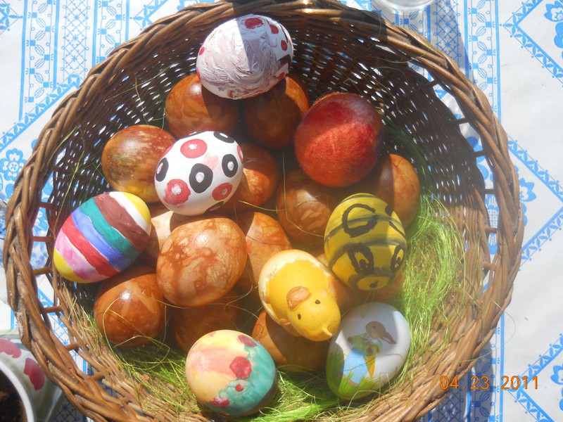 А остальные красила наша бабушка природными способами, луковой шелухой, и всякими травками-муравками