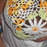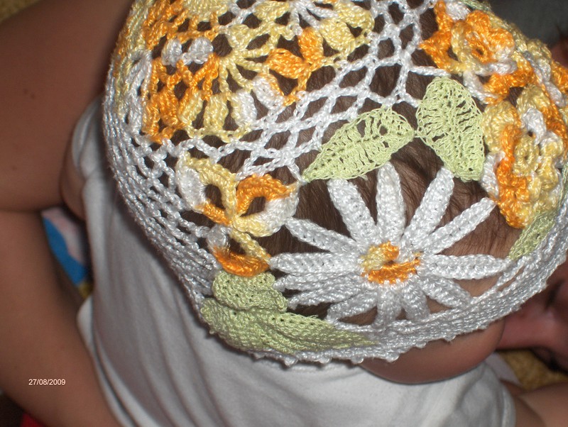 В ожидании весны связалась такая "Цветочная поляна". Нитки - хлопок.А это лёгкий летний вариант с разноцветными бусинками из более тонкого хлопка.Ещё вариант летней шапочки с бусинками в тон.Моя "Фантазия" связана в технике фриформ.Цветы и листики вяжутся отдельно,затем собираются в изделие.В первое лето обувь мы не носили,дочке было 7 месяцев,щеголяли в таких ажурных сандаликах. 100% хлопок.Лёгкое болеро вязалось к выпускному брата. Идея взята на "Осинке". Нитки - хлопок с вискозой.Вяжется цельным полотном,швы только на плечах.Рукава - на носочных спицах без шва.Тёплое болеро из акрила.Вяжется как салфетка по кругу.