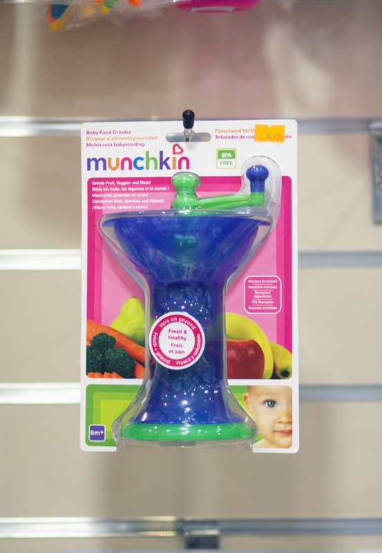 Вы когда-нибудь слышали о таком названии как Munckin? Оказывается, под этим американским брендом выпускается много интересных товаров для детей. Присмотритесь! Ассортимент и правда очень большой: здесь есть и игрушки, и детская посуда, и даже стульчик для кормления, но... необычный Как думаете, что это? Сумка? Да. А в ней - стульчик для кормления. Серьезно!)Вот, посмотрите, пожалуйста: это переносной стульчик, который удобно трансформируется в сумку. Он выдержит ребенка весом до 22,7 кг. Цена очень приемлемая - 23,05 LsА это - специальные ёмкости для мытья головы: наливаем сюда воду и удобно смываем шампунь с детской головки. Цена - 6,15 Ls Дети очень любят купаться и, как правило, берут с собой за компанию много игрушек. Такие есть и у Munckin. Но сейчас речь не о них. А о том, где их хранить. Предлагаем своего рода гамак для них розового или голубого цвета - удобно и красиво! Стоит 6,60 Ls Эти игрушки можно запросто использовать в воде, а также просто использовать в качестве развивающие игр, складывая одну в другую - 3,98 LsА это - комплект тарелочек с крышками, причем тарелочки на столе не будут скользить, что очень удобно - 8,35 LsНа первый взгляд, это кружка, но на самом деле это ёмкость для сухиз закусок, особенно пригодится в дороге - оттуда малыш может сам доставать печеньку или другое лакомство, при этом все компактно и ничего не пачкается . Цена - 4,80 LsЕще одна интересная вещь - Fresh Food Feeder: кладешь в это "ситечко", например, кусочек яблочка и даешь малышу. Он ест, не пачкая ручек, и при этом не подавится, потому что не откусит слишком большой кусок. Цена - 3,98 LsBaby Food Grinder - компактный измельчитель овощей и фруктов (8,40 Ls)Ложечки - продаются также по отдельности, цена - 0,69 LsЗнаете, где вы все это можете купить? Мы - знаем! В магазине Maijiņa в т/ц Galleria Riga!