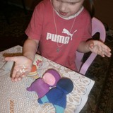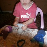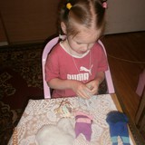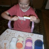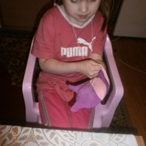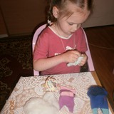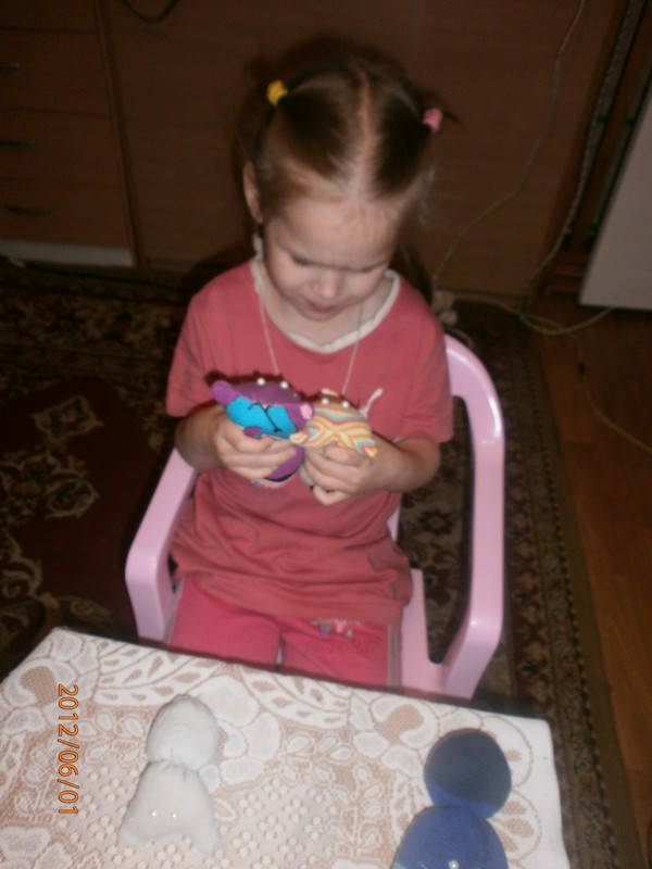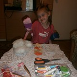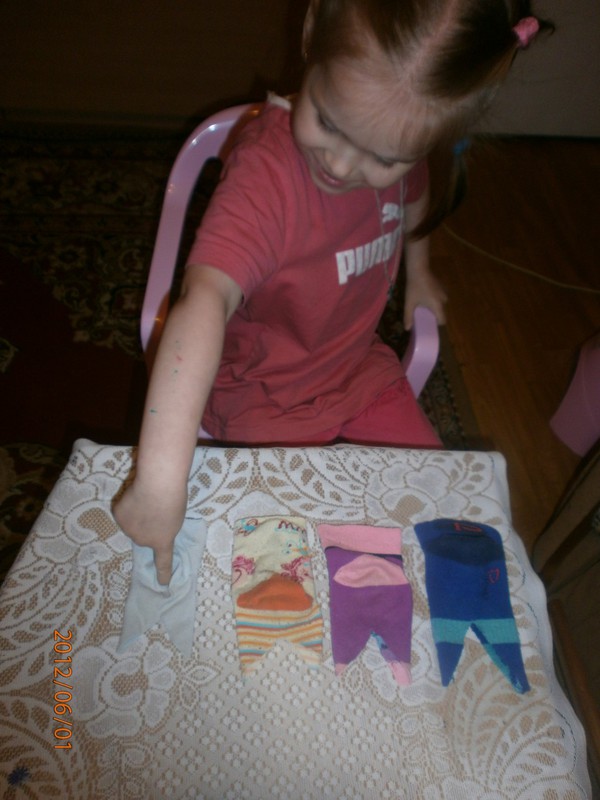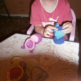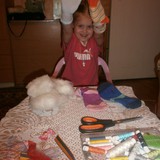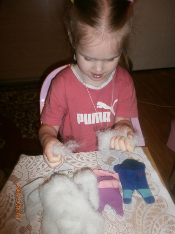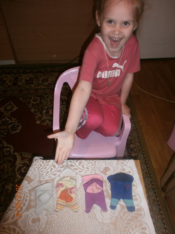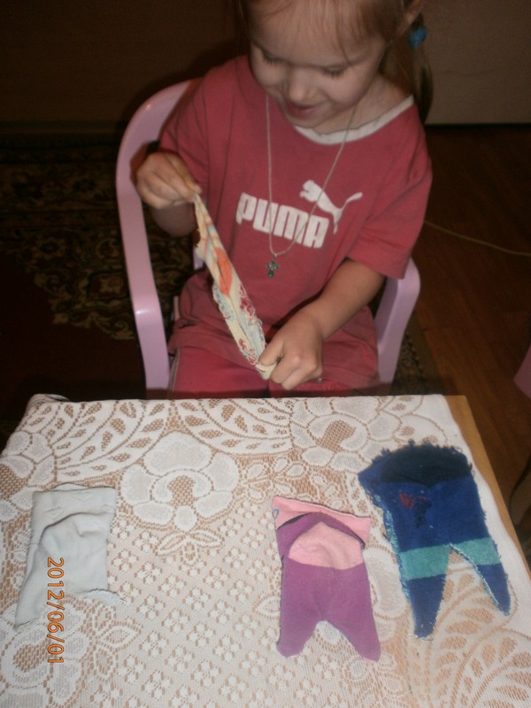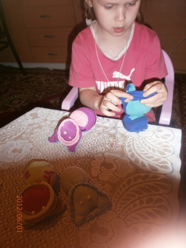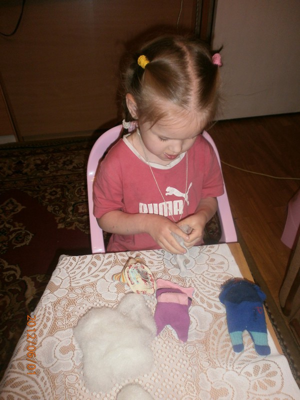Для игрушек нам понадобились носки,ножницы,иголка с нитками,синтепон,ленты,бусиныГотовы приступить к творчеству!Разрезаем носки на 3 части.Все части пригодятся.Вырезаем ушкиВыворачиваем наизнанкуВыворачиваемИ пришиваем разрезаниые ушкиПришилиОпять выворачиваем уже на лицевую сторонуВыворачиваемВот что у нас получилось...Берём синтепонНабиваем наши носочки синтепономНабиваемНабиваемНабиваем все носочкиНиз зашиваем,стягивая ниткуДалее ниткой перетягиваем горло,чтоб выделить голову и туловищеПеретягиваемБерём бусины и пришиваем глазкиРебёнок уже играется.Что то не хватает?!Берём часть резиночку от носка чтоб обрезали и пришиваем на голову.Делаем лицоОдеваем резиночку носка,Одеваем и пришиваемТеперь делаем ротик.Доча выбрала каждому чубрику свой цвет ротикаУррра! Почти готовы.Набиваем синтепоном оставшуюся часть носка,зашиваем,пришиваем-это ножки и опораМама,это мои дети!Доча назвала их Чубрики,незнаю почему. А каждому дала имена-папа,мама,Камилла и ляля.Мамочка,спасибо,я их так люблю!