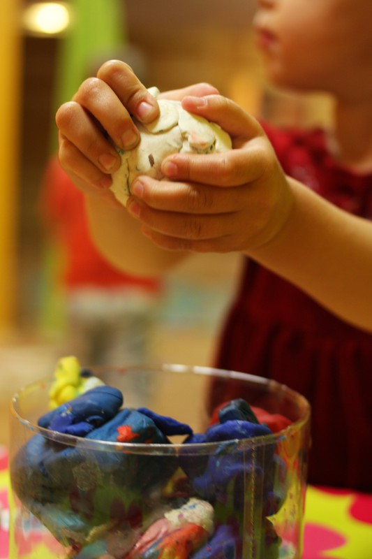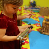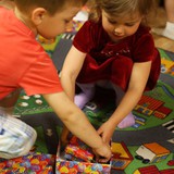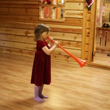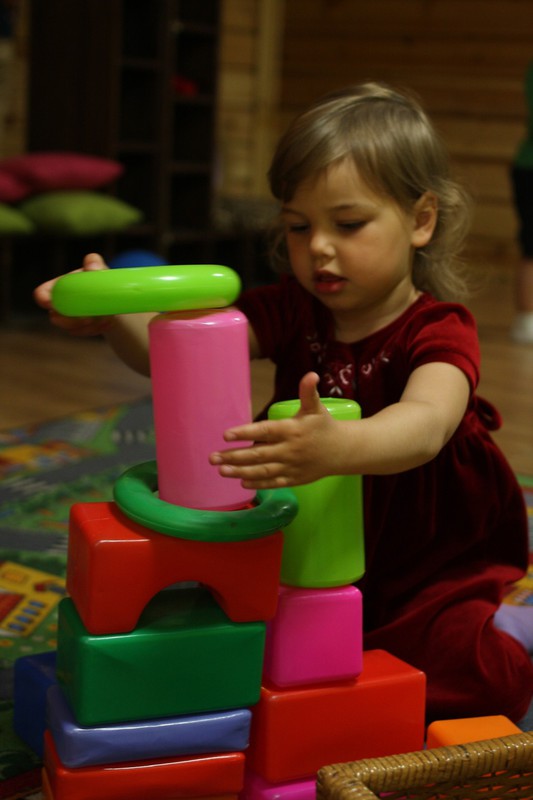 Игрушек так много, с чего бы начать?А вот с чего!Между тем, на глаза Анюте попала яркая, волшебная трубочка А затем красный, воздушный шарик Надудевшись и наигравшись с шариком, Анюта вернулась к стеллажу с игрушками И нашла кубики, из которых тут же был сооружен замокЗамок есть, нужно еды приготовить Благо, здесь есть из чего готовить В это время Максюша примеряет на себя разные образыМаски здесь разные Можно и в полицейского поиграть Впрочем, можно ведь и на рыбалку сходить А потом... Вместе поиграть в увлекательную мозаику Получилось очень дружно Так, перерыв пять минут - играем на барабанах О, что это за корзина? Давай посмотрим! Детский боулинг начинается! Кегли расставлены, можно сбивать После игры мы нашли на полочке деревянные пазлы - интересные, никогда раньше таких не встречалиДети решили посмотреть, что осталось на полочке и... ...обнаружили коробку с конфетками