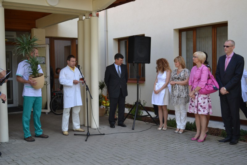 10 августа 2012 года войдет в историю Юрмальской больницы как дата, когда после реконструкции открылось родильное отделение В этот день в Юрмалу съехалось много гостей Торжественное мероприятие по открытию родильного отделения началось с приветствия руководителя Юрмальской больницы Эгона Лиепиня Затем больницу с таким событие поздравила министр здравоохранения Ингрида ЦирценеВсе цветы и подарки вручались заведующей родильного отделения Йоланта Барбале-Малниеце Все это фотографировалось И снималось На разные камеры Выступал также мэр города Юрмалы Гатис Трукснис также произнес речь и подарил 2 серебряные ложечки, которые подарят первым двум новорожденным, которые появятся на свет в отремонтированном отделенииНесколько слов сказала также заведующая родильного отделения Йоланта Барбале-Малниеце. Очень символично, что она сейчас ждет малыша А потом потянулась вереница тех, кто хотел лично поздравить персонал больницы с таким событием Желающих было многоОчень много - вы только посмотрите, сколько людей собралось! И коллеги по больнице поздравляли Из разных отделений И разных должностей И те, кто строил (подарили телевизор)И коллеги из других больниц В том числе рижского роддомаВсе говорили очень теплые словаИ желали, конечно же, всего самого доброгоПриехали представители разных организаций, так или иначе связанных с детьмиНе раз упоминалось, что Юрмала славится своей больницейВ который многие хотят попасть И не только хотят, но и приезжают сюдаЧтобы на свет появился их долгожданный малышБыло сказано немало добрых словВручено много, много подарков Много цветов В топе оказались пальмыТак что теперь родильное отделение может превратиться в оазис Где всегда тепло и солнечно Очередь поздравляющих все не заканчивалась И это было очень приятноВедь атмосфера наполнялась таким добром и светом Оказалось, у больницы много друзейНо, конечно, всем, кто приехал (представители практически всех больниц), очень хотелось заглянуть в отремонтированные помещения Экскурсию по новому родильному отделению пообещали И обещание свое сдержали (на фото - врученные подарки)Но для начала нужно... Правильно! Перерезать красную ленточку Готово! Отделение открыто! Добро пожаловать на экскурсию! Увидимся в следующем фотоблоге